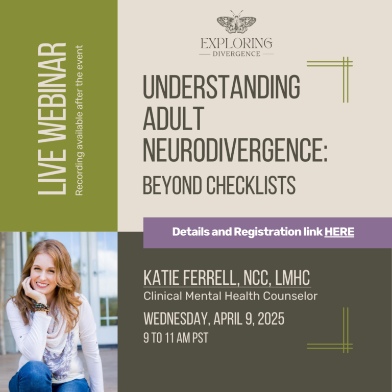 Katie holds a BA in Psychotherapy, Mindfulness, and Creative Expression, and an MA in Mental Health Counseling & Behavioral Medicine. This diverse academic foundation, combined with her lived experience as a neurodivergent adult, allows her to connect meaningfully with clients navigating complex, often non-traditional challenges.